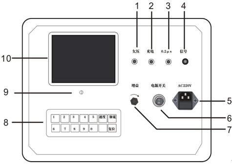 5.電源插座 6.電源開關(guān) 7.增益調(diào)節(jié) 8.操作鍵盤