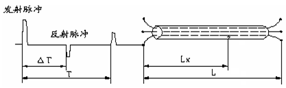 電纜故障測試系統(tǒng)測量電纜故障時,電纜可視為一條均勻分布的傳輸線,在電纜一端加脈沖電壓,則此脈沖按一定的速度(決定于電纜介質(zhì)電常數(shù)和導磁系數(shù))沿線傳輸,當脈沖遇到故障點(或阻抗不均勻點)就會發(fā)生反射,用閃測儀記錄下發(fā)送脈沖和反射脈沖之間的傳輸時間△T,則可按已知的傳輸速度V來計算出故障的距離Lx,Lx=V·△T/2,如圖10所示。