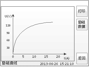在圖2.4或圖2.6的測(cè)量結(jié)果頁(yè)面,選擇勵(lì)磁結(jié)果,將出現(xiàn)勵(lì)磁曲線界面,如圖2.13:
