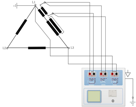 智能互感器測(cè)試儀在三角形接法變壓器上進(jìn)行CT測(cè)試的接線方式如圖18所示。
