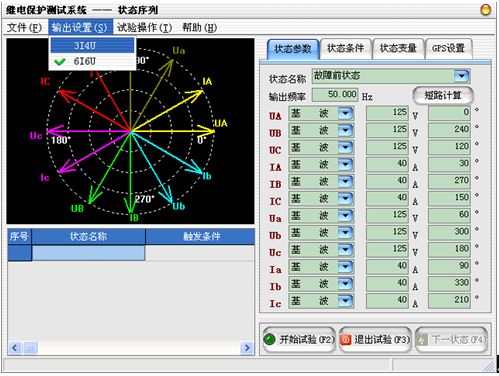 由用戶定義多個試驗狀態(tài),可對重合閘、多次重合閘、備自投、縱聯(lián)保護(hù)等進(jìn)行測試,狀態(tài)數(shù)量可無限添加。