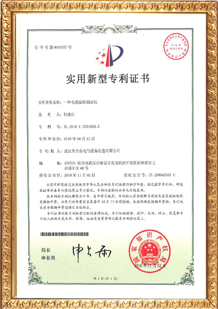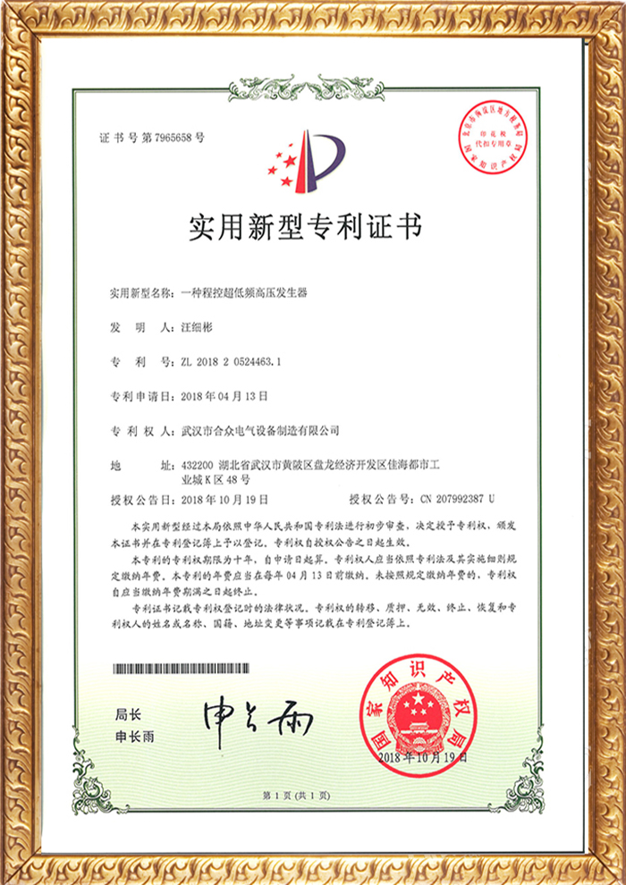 變頻串聯(lián)諧振耐壓試驗裝置專利證書