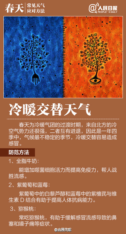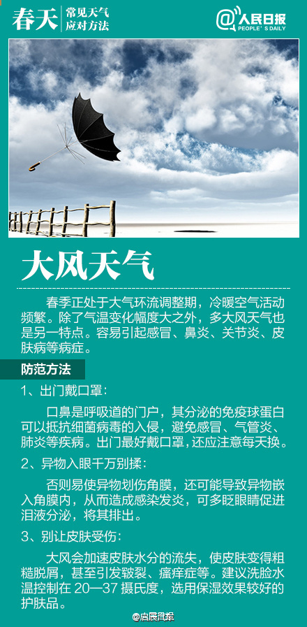 春季天氣調(diào)皮,昨天還日光融融閑賞花,今日就寒風(fēng)瑟瑟緊添衣!大風(fēng)、沙塵、陰雨等交替上演,讓感冒、過(guò)敏、關(guān)節(jié)炎等進(jìn)入高發(fā)期。今天#世界氣象日#,四張圖教你應(yīng)對(duì)春季多變天氣!