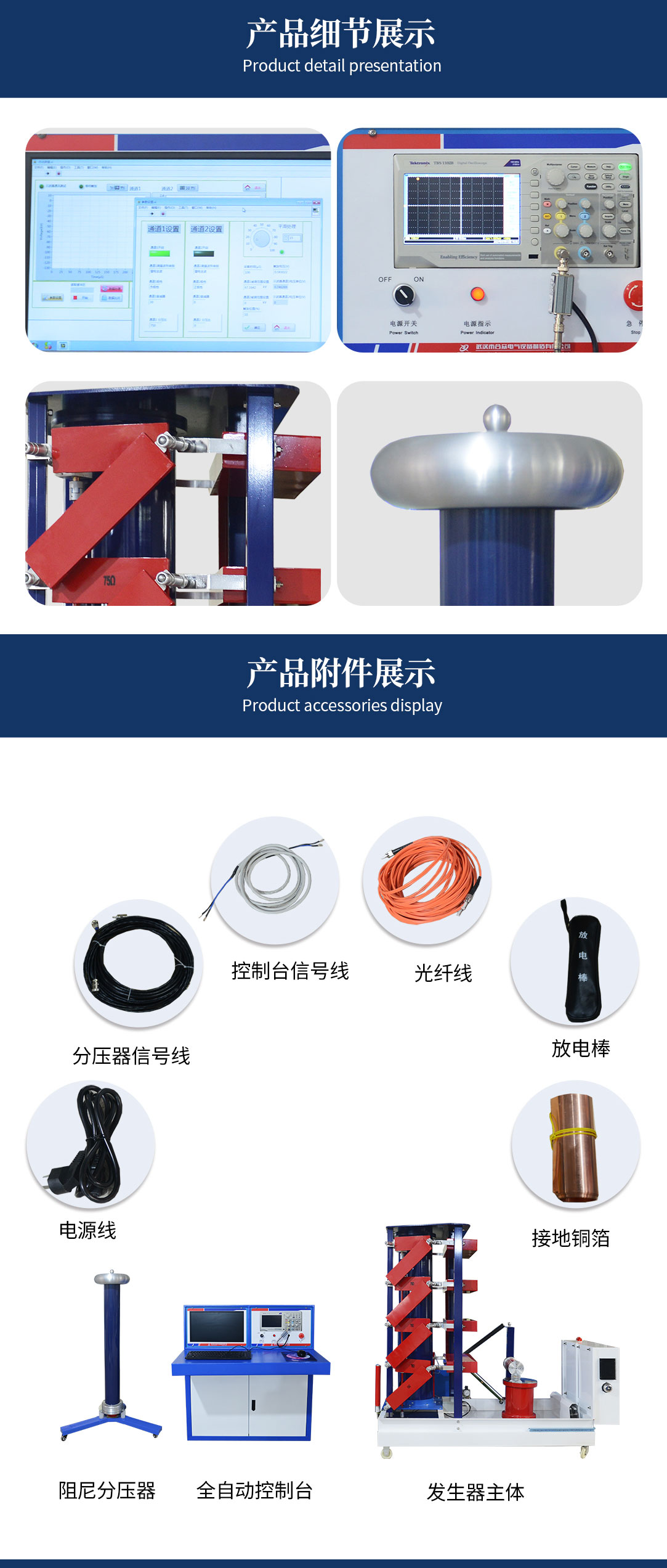 適用范圍:變壓器、戶外斷路器、互感器、電抗器、避雷針、開(kāi)關(guān)及其它高壓電器、高壓晶閘管閥SVC(HVDC)、電力電纜、各類高壓絕緣子、套管等試品的標(biāo)準(zhǔn)雷電沖擊,雷電截?cái)嗖?,操作沖擊及用戶要求的非標(biāo)準(zhǔn)沖擊波的各類沖擊電壓試驗(yàn)。一套設(shè)備就可產(chǎn)生多種試驗(yàn)波形(標(biāo)準(zhǔn)的和非標(biāo)準(zhǔn)的波形,用戶提出來(lái)的波形)。