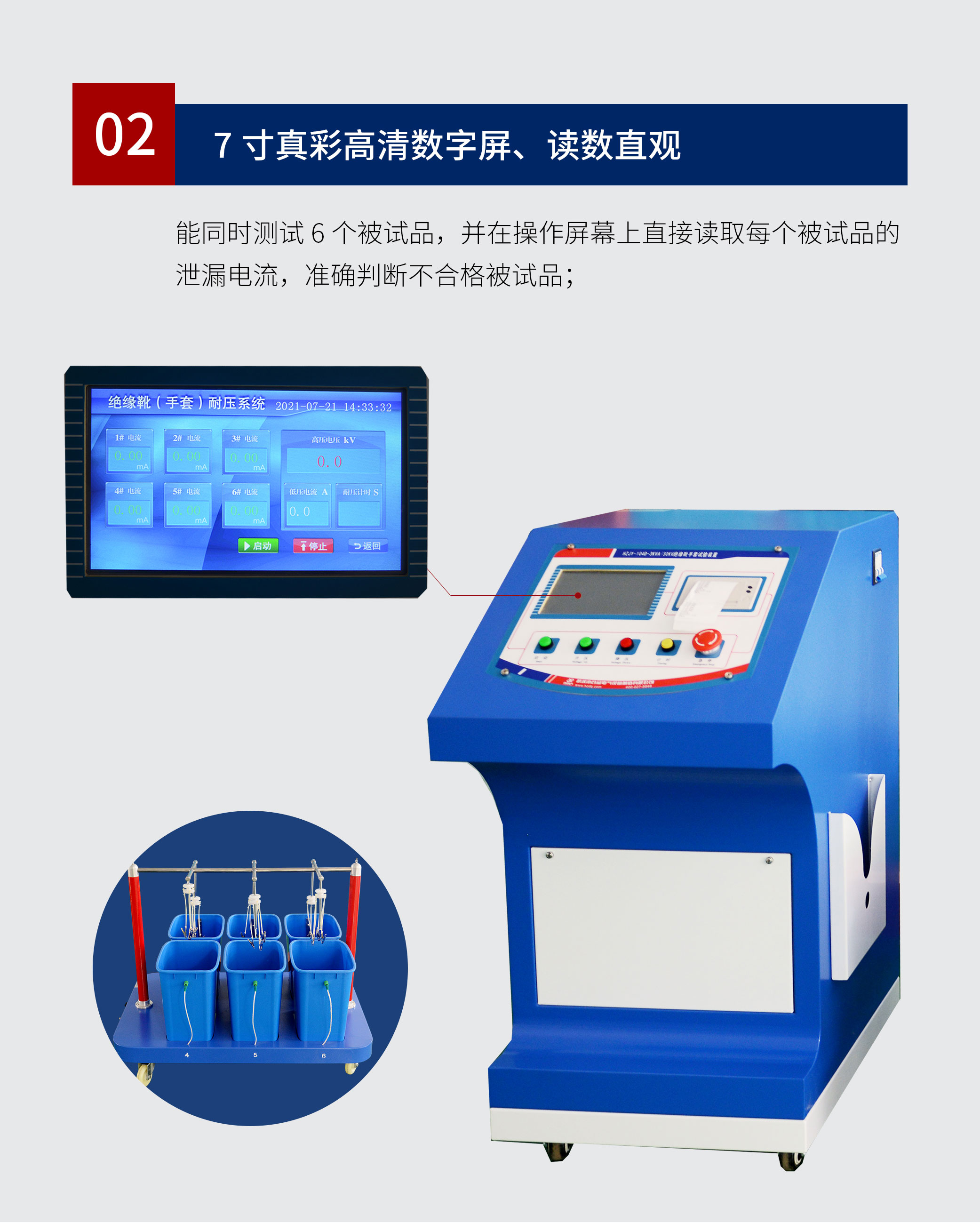 7、讀數(shù)直觀:能同時測試6個被試品,并在操作屏幕上直接讀取每個被試品的泄漏電流,準確判斷不合格被試品;