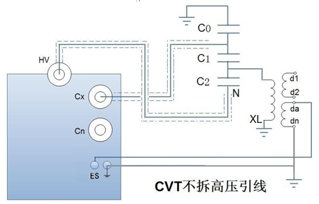 2、不拆高壓引線測(cè)試CVT電容值和介損測(cè)量模式:CVT自激法。電壓≤2kV
