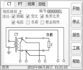 ③級(jí)別:被測繞組的級(jí)別,對(duì)于CT,有P、TPY、計(jì)量、PR、PX、TPS、TPX、TPZ等8個(gè)選項(xiàng)。