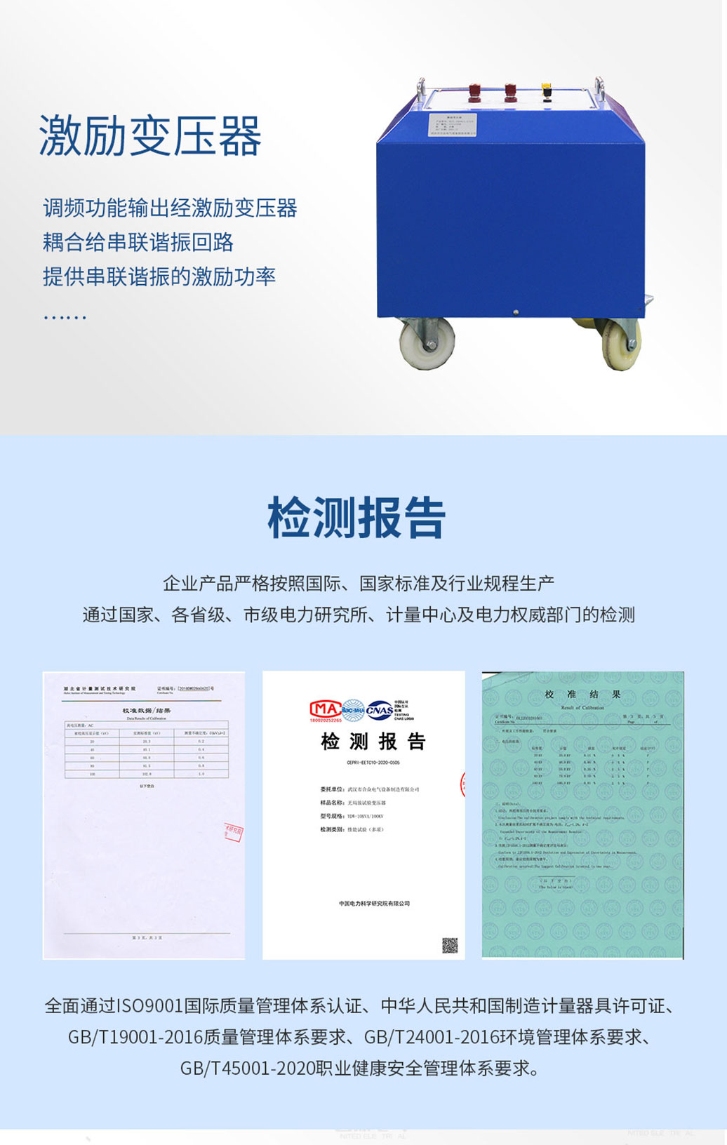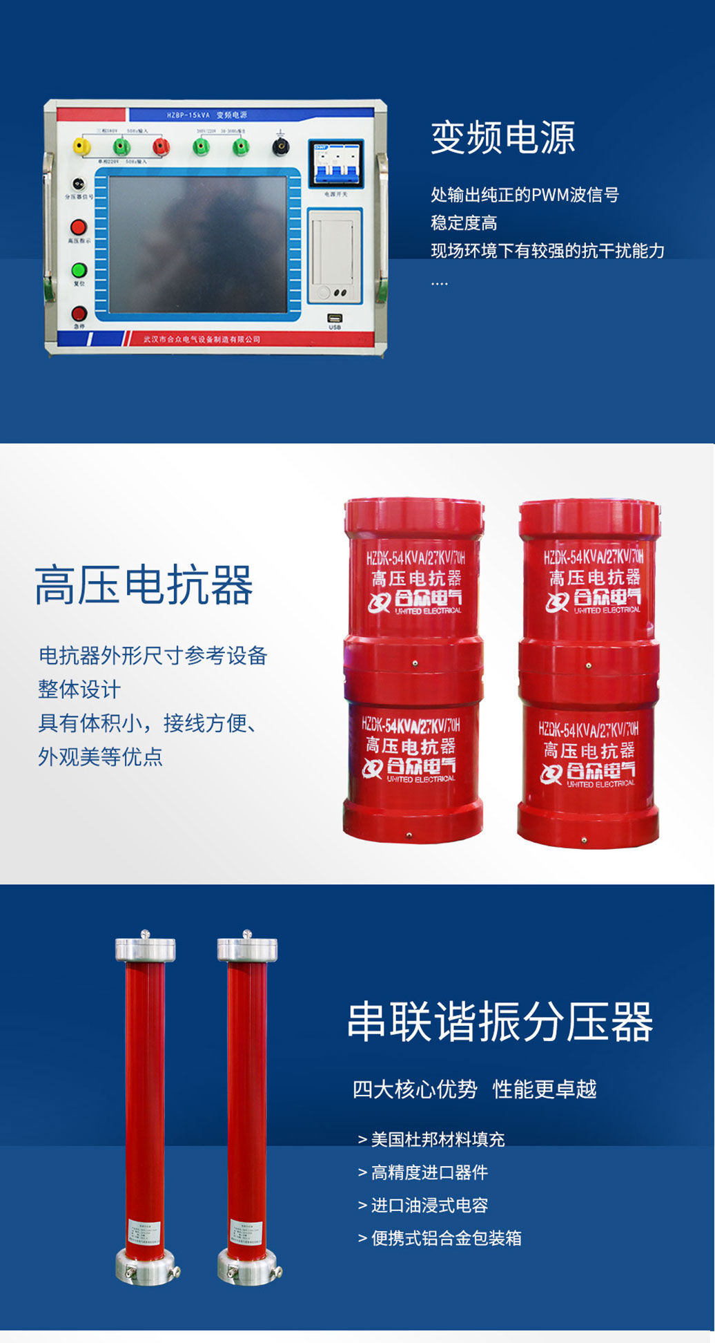 *該裝置主要由變頻控制電源、激勵變壓器、電抗器、電容分壓器、補償電容器(選配)組成。