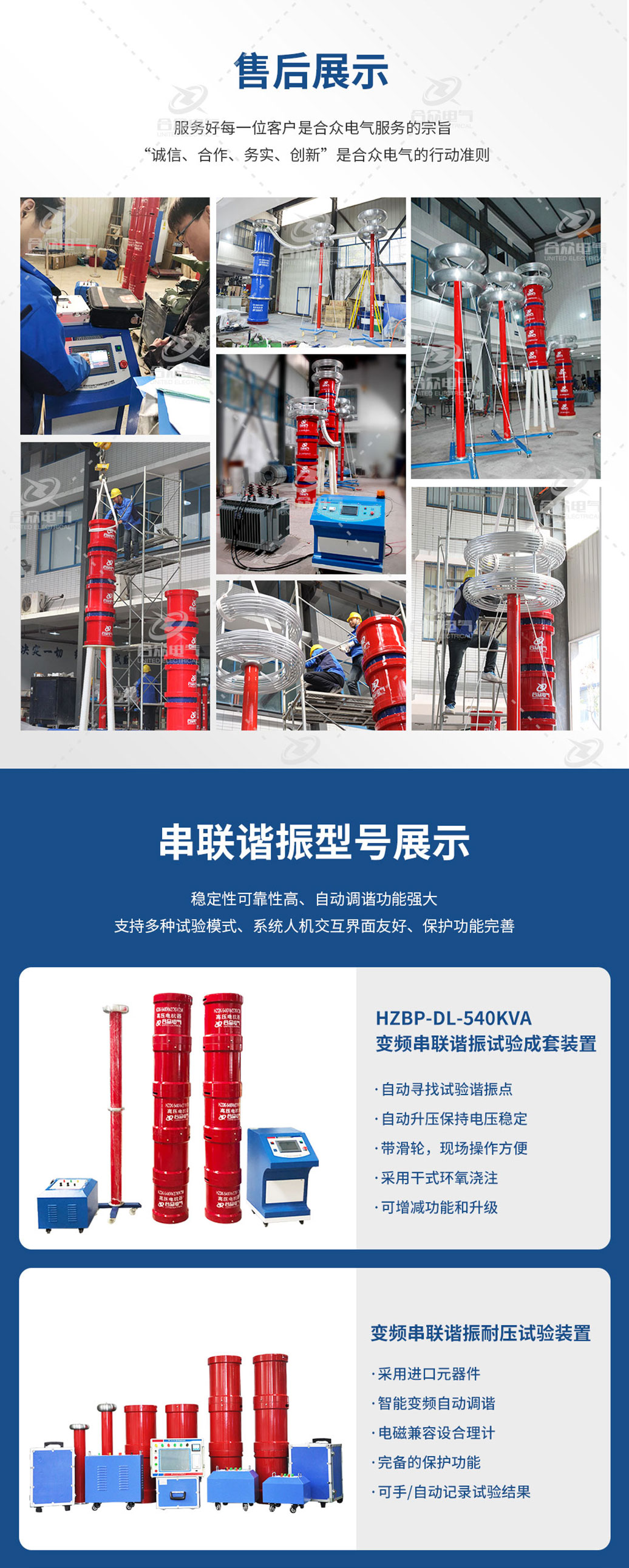 合眾電氣作為串聯(lián)諧振生產(chǎn)制造的老廠家,研發(fā)技術(shù)底蘊深厚,售后服務體系完備完善,目前已為千余家客戶提供過串聯(lián)諧振相關售后服務。