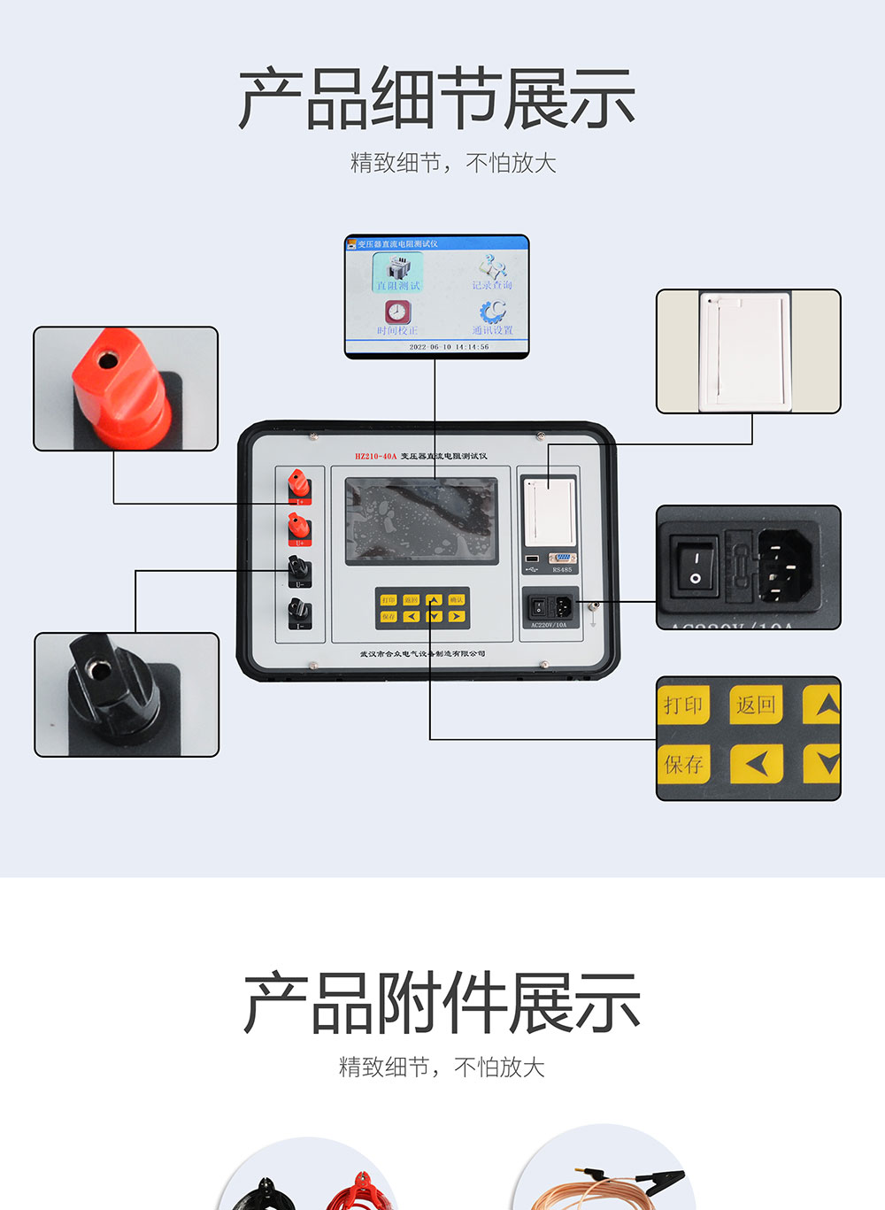 直流電阻的測量是變壓器、互感器、電抗器、電磁操作機(jī)構(gòu)等感性線圈制造中半成品、成品出廠試驗(yàn)、安裝、交接試驗(yàn)及電力部門預(yù)防性試驗(yàn)的必測項(xiàng)目,能有效發(fā)現(xiàn)感性線圈的選材、焊接、連接部位松動(dòng)、缺股、斷線等制造缺陷和運(yùn)行后存在的隱患。為了滿足感性線圈直流電阻快速測量的需要,我公司利用自身技術(shù)優(yōu)勢(shì)研制了直流電阻測試儀。該儀器采用全新電源技術(shù),具有體積小、重量輕、測試量程寬、抗干擾能力強(qiáng)、保護(hù)功能完善、大屏彩色液晶顯示等特點(diǎn)。整機(jī)由單片機(jī)控制,自動(dòng)完成自檢、數(shù)據(jù)處理,具有自動(dòng)放電和放電指示功能。儀器測試精度高,操作簡便,可實(shí)現(xiàn)直阻的快速測量。