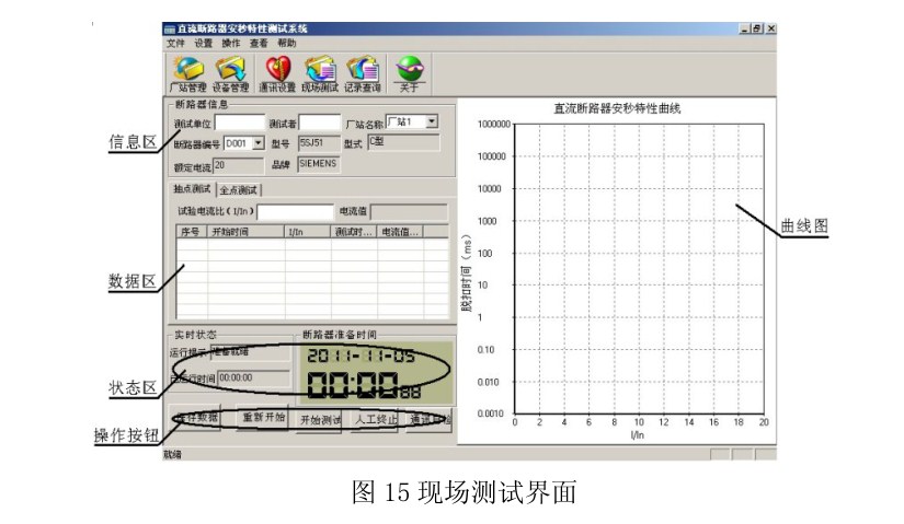 直流斷路器安秒特性測試儀現(xiàn)場試驗操作界面