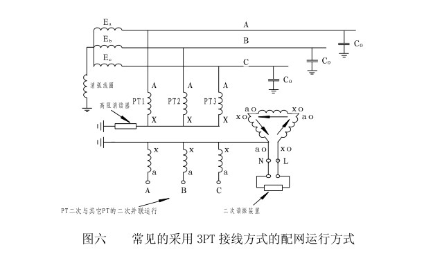3、退出PT開口三角的消諧裝置。如果經(jīng)過實測證明,開口三角所接的某些廠家某些型號的二次消諧裝置對測量結(jié)果沒有影響,則消諧裝置可以不退出運(yùn)行。一般對于微電腦控制的消諧器,其只有在系統(tǒng)有諧振發(fā)生時才動作,該類消諧器一般對測量無影響。