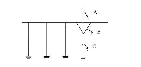 在 C 點(diǎn)測(cè)量時(shí),所測(cè)的是該支路下的接地電阻值。